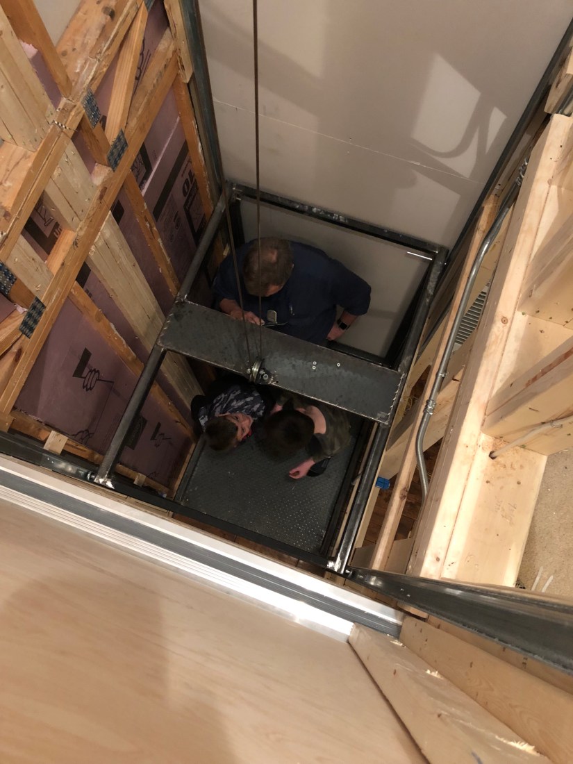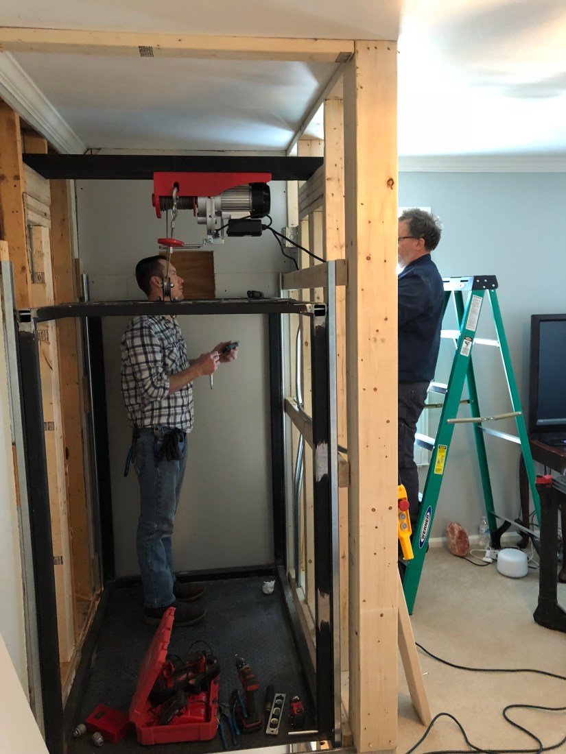 The awesome team came to finish the wiring and hook up last week, Friday and Saturday. In a very short time, they had the rails anchored in, the car attached to Busty, and had test runs up and down. The best part was seeing the smile on their faces as it was working! They designed and built from scratch, using their expertise and creativity, and the satisfaction of seeing their work run flawlessly is enough to bring me to tears even now! And my own smile as it’s working I hope expresses my excitement and gratitude!